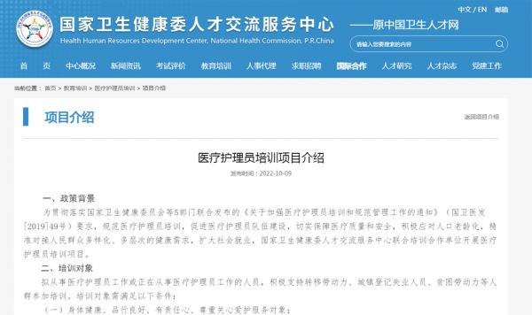 國家衛(wèi)生健康委人才交流服務中心:醫(yī)療護理員培訓項目介紹及報考說明