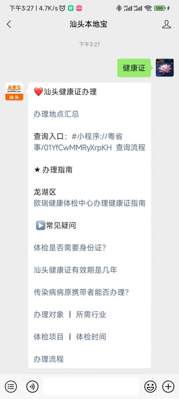 溫馨提示:微信搜索公眾號汕頭本地寶,關(guān)注后在對話框回復(fù)【健康證】獲取汕頭食品類健康證辦理地點,查詢?nèi)肟冢k理指南,常見疑問等。