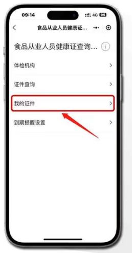 2、查本人健康證:點我的證件可查看自己的健康證信
