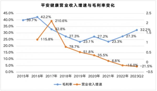 近日,平安健康醫(yī)療科技(為便于區(qū)分,以下簡(jiǎn)稱“平安健康”)披露了2023年半年報(bào),營業(yè)收入22.2億元,同比下降21.5個(gè)百分點(diǎn),毛利率提升5.6個(gè)百分點(diǎn),達(dá)到32.2%。