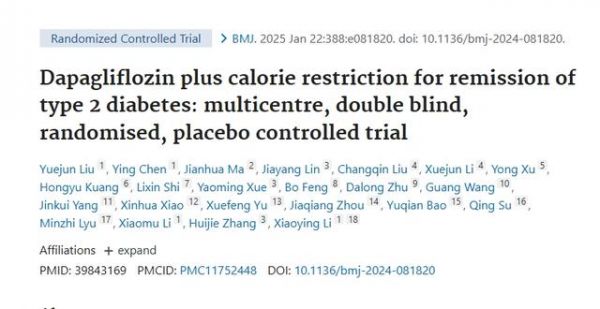 [1]Liu Y, Chen Y, Ma J, et al. Dapagliflozin plus calorie restriction for remission of type 2 diabetes: multicentre, double blind, randomised, placebo controlled trial. BMJ. 2025;388:e081820. Published 2025 Jan 22. doi:10.1136/bmj-2024-081820