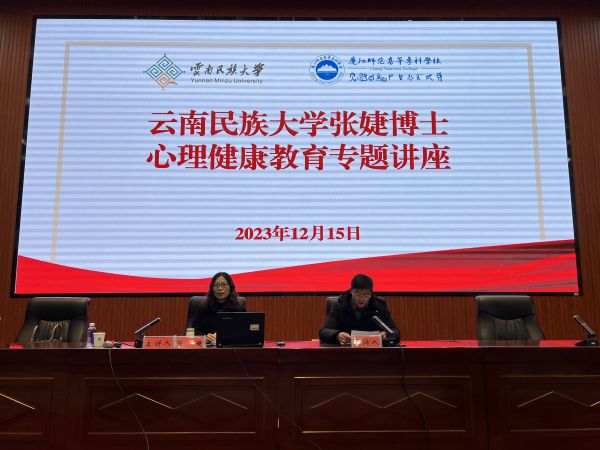 為普及心理健康知識(shí),增強(qiáng)學(xué)生自我心理保健能力,提升學(xué)生身心健康水平,2023年12月15,我校邀請(qǐng)?jiān)颇厦褡宕髮W(xué)張婕到校開展題為《新時(shí)代大學(xué)生心理健康促進(jìn)》的心理健康教育專題講座,450余名學(xué)生參加了本次講座。