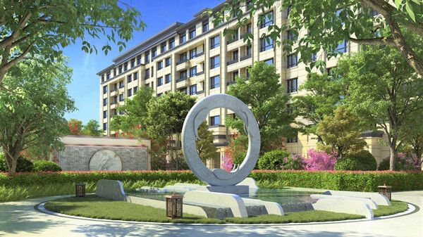 路面采用燒面滲水磚與造型石材結(jié)合鋪裝,外立面采用新亞洲建筑風(fēng)格,采用進口的天然石材——溫莎米黃外墻干掛、建筑頂部以鋁板造型裝飾。