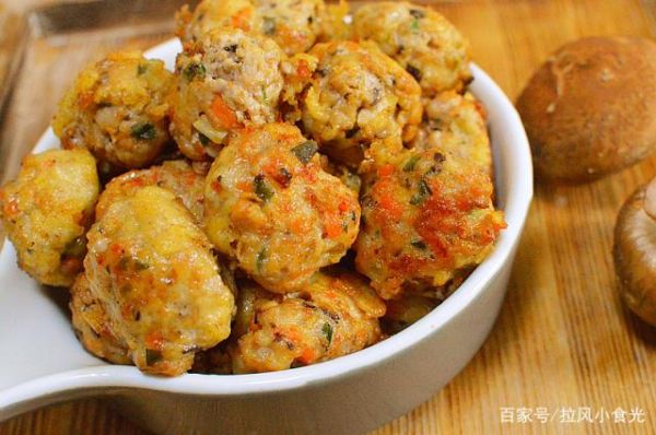 【食材】豬肉400g、香菇兩個、胡蘿卜半根、香蔥兩根、淀粉1勺、1勺食鹽、少許生抽、胡椒粉、