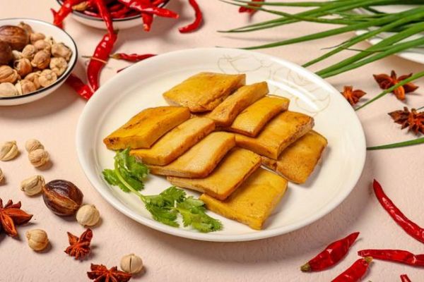 第二種是五香豆干。外層的糖鹵料汁徹底改變了它的營養(yǎng)結(jié)構(gòu)。想象一下,豆干在鍋里反復鹵煮,醬油、白糖、香辛料一遍又一遍地浸進去,糖分牢牢附著在豆塊表面。幾塊下肚,血糖飆升得比甜品還快。