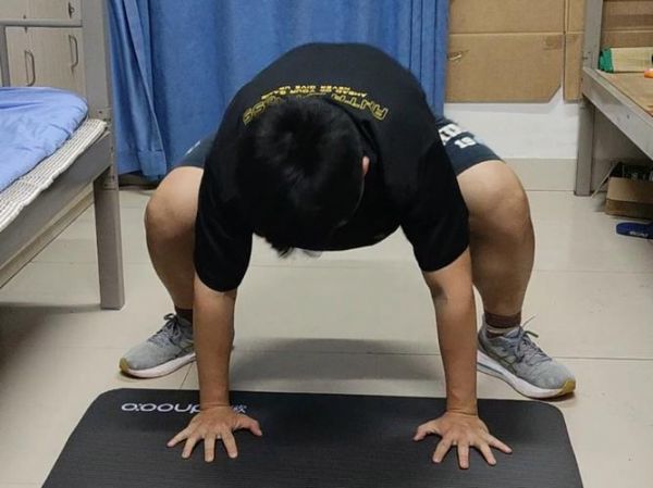 波比跳,這一更為高強(qiáng)度的訓(xùn)練動(dòng)作,在開(kāi)合蹲跳的基礎(chǔ)上進(jìn)一步提升了訓(xùn)練效果。起始姿勢(shì)為站立,雙腳分開(kāi)與肩同寬,雙臂自然垂于身體兩側(cè)。接著進(jìn)行下蹲動(dòng)作,雙手觸地后,雙腿同時(shí)用力向后蹬出,從而轉(zhuǎn)化為俯臥撐的準(zhǔn)備姿勢(shì)。在做俯臥撐后,迅速跳回下蹲的起始姿勢(shì),緊接著,利用雙臂的力量向上跳起,雙臂舉過(guò)頭頂。