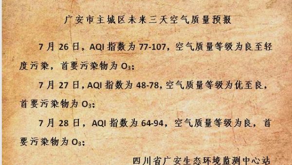 7月24日,廣安主城區(qū)的環(huán)境空氣質(zhì)量綜合指數(shù)為2.22,這一數(shù)值在全省排名中位列第8位,而在全國168個重點(diǎn)城市中則排名第31位。具體來看,PM2.5的日均濃度為14微克/立方米,而AQI指數(shù)為91,表明當(dāng)日的空氣質(zhì)量狀況為良。