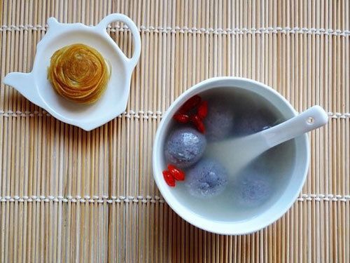 制法:將山藥搗碎成粉,放入蒸鍋內(nèi)蒸熟,加白糖,胡椒少許,調(diào)成餡備用。糯米泡后,磨成湯圓米粉,分成若干小團。將山藥餡與糯米粉團制成湯圓,下沸水鍋中煮熟即成。當(dāng)作主食,早晚食用。