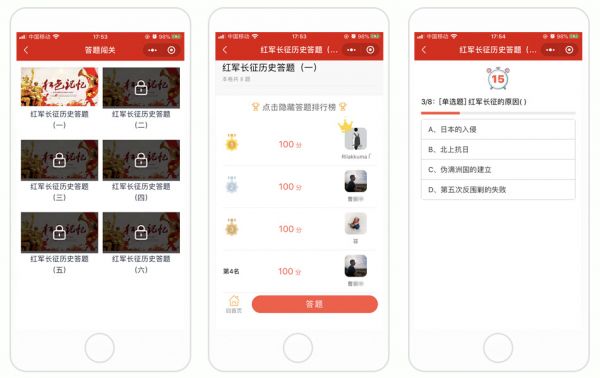 通過網(wǎng)上重走長征路主題活動,參與長征歷史答題,每天參與活動還能在線答題考試,測評自己掌握的歷史知識。可以通過答題功能進行網(wǎng)上重走長征路答題活動。一邊行走,一邊還能進行答題學(xué)習(xí)。比如需要走到哪個長征點,就可以解鎖相關(guān)的答題。進行長征知識答題。將微信運動和新時代重走長征路結(jié)合,線下運動徒步行走,線上兌換重走長征路的里程數(shù)。