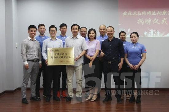 致辭結(jié)束后,體療驛站創(chuàng)始人胡鴻俊、成都體育學(xué)院附屬體育醫(yī)院副院長(zhǎng)兼運(yùn)動(dòng)醫(yī)學(xué)與健康學(xué)院副院長(zhǎng)廖遠(yuǎn)朋、北京體育大學(xué)教授兼訓(xùn)練競(jìng)賽處處長(zhǎng)趙冰、成都體育學(xué)院運(yùn)動(dòng)康復(fù)系副主任汪敏加、上海曙光醫(yī)院骨科主任石關(guān)桐、體療驛站聯(lián)合創(chuàng)始人宋曉芃共同上臺(tái),為體療驛站開業(yè)揭牌并合影留念。