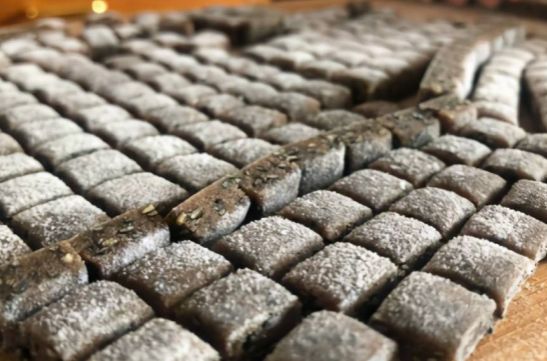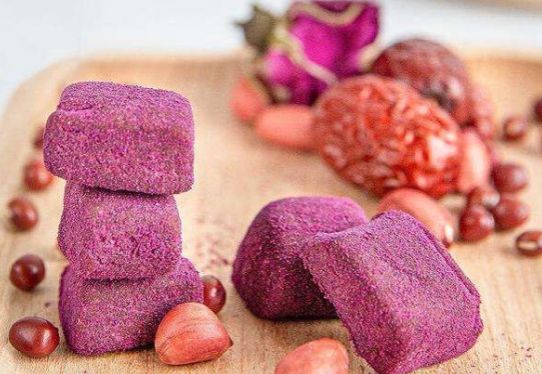 (6)用刀切成小塊狀,表面撒上一層食物粉,就可以直接吃了。