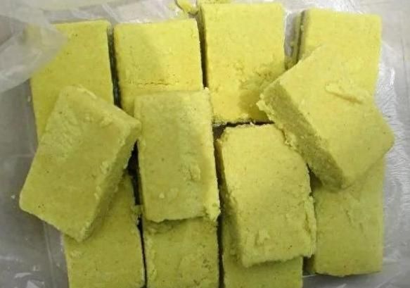 9、取出冷卻后的毛豆糕,切成塊狀即可食用。