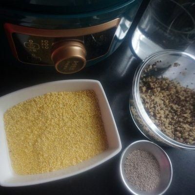 1、準(zhǔn)備食材:小米50g 奇亞籽10g 三色藜麥(熟)100g 水1000ml