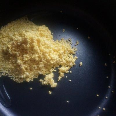 2、在鍋內(nèi)倒入洗凈的50g小米