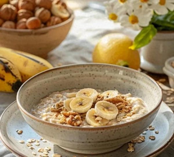做法:燕麥與牛奶煮至濃稠,加入切片香蕉和奇亞籽