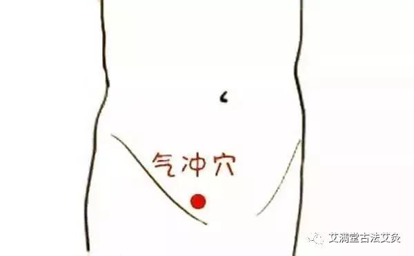 氣沖穴在腹股溝稍上方,當臍中下5寸,距前正中線2寸。(此穴為雙穴,左右各一)