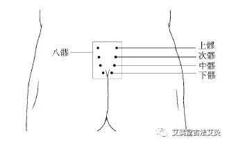 《素問·骨空論》:“八髎在腰髎之間”,具體部位相當于骶骨上的四對骶后孔,左右共八穴。