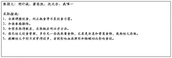 東港實(shí)驗(yàn)幼兒園班級(jí)體弱兒、肥胖兒管理記載