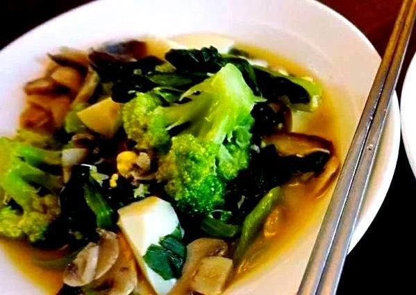 以口蘑、鮮香菇、青菜、西蘭花為主要食材,撒上白煮蛋碎調(diào)味增香。