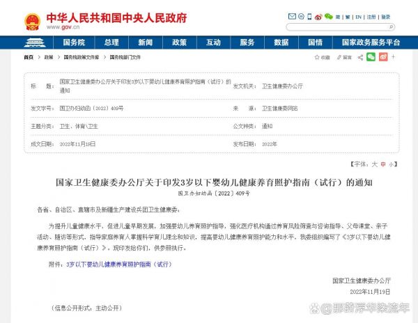 國(guó)家衛(wèi)生健康委辦公廳關(guān)于印發(fā)3歲以下嬰幼兒健康養(yǎng)育照護(hù)指南(試行)的通知