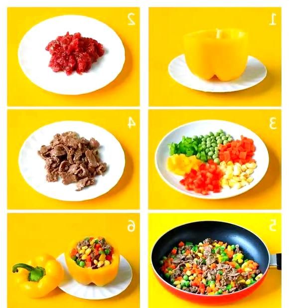 將炒制完成的牛肉蔬菜丁裝入之前處理好的甜椒碗中,即可趁熱享用。