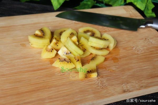步驟1:奇異果清香干凈去外皮,切塊。榨汁杯比較少,所以要切塊,在辦公室找一個水果刀,一個簡易的水果砧板即可。如果家庭版的大榨汁機可以直接放,不需要榨汁。