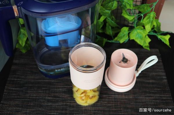 步驟2:切好的奇異果,放入榨汁杯,然后用萊卡濾水壺,加入適量水,擰緊蓋子,搖一搖。