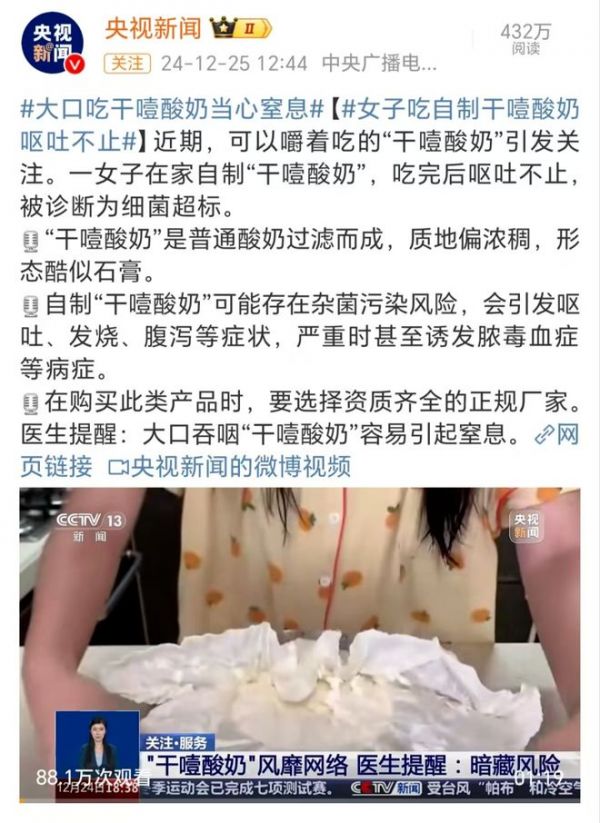 “干噎酸奶”風(fēng)靡全網(wǎng) 在家制作有雜菌污染風(fēng)險