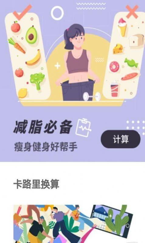 1、卡路里換算用最為專業(yè)以及科學(xué)的方法幫助你改善身材的狀況,杜絕盲目的健身方式對身體造成的傷害。
