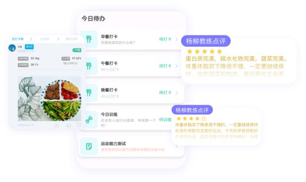 每一餐教練都會(huì)針對(duì)性點(diǎn)評(píng),給出建議,外食外賣(mài)都有方案,手把手教會(huì)你搭配健康餐。
