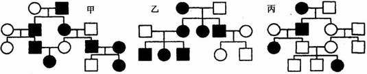 (2)Leber遺傳性視神經(jīng)病是線(xiàn)粒體DNAll77位點(diǎn)的G—A突變?cè)斐傻?,患者常伴有繼發(fā)性色覺(jué)障礙,多為全色盲,次為紅綠色盲和色弱。圖甲、乙、丙分別為三個(gè)色盲家系譜,其中屬Leber遺傳性視神經(jīng)病系譜的是 。