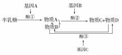 中形成半乳糖脂,是構(gòu)成神經(jīng)系統(tǒng)的重要原料,又可和其他糖類(lèi)一樣,作為能量的來(lái)源。把半乳糖導(dǎo)入糖類(lèi)的通常代謝途徑中,必須先轉(zhuǎn)變?yōu)槠咸烟堑难苌?物質(zhì)C)。它在人體內(nèi)的正常代謝途徑示意如下: