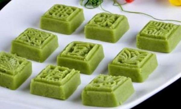 做法:將綠豆粉與糖粉混合,倒入純牛奶攪拌均勻,上鍋蒸30分鐘。取出放涼備用,掌心抹上色拉油,將綠豆粉和紅豆沙分別搓出小球取一個(gè)綠豆球,壓平,包入一個(gè)紅豆沙餡,模具刷油,將包好的劑子用手壓入模具內(nèi),按平按緊即可。