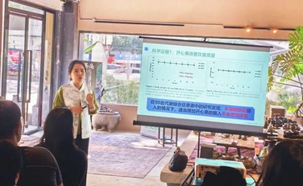 此外,多項(xiàng)對(duì)照實(shí)驗(yàn)表明,在不嚴(yán)格限制熱量的情況下,適量攝入開心果不會(huì)引起體重上升;在行為干預(yù)減重中,食用者體重、BMI和腰圍有所下降,負(fù)面情緒也顯著緩解。與此同時(shí),美國開心果還對(duì)血糖調(diào)控、脂質(zhì)代謝和視力健康有益。營養(yǎng)師建議,每日食用一小把原味帶殼開心果,或?qū)⑵浼尤肷忱?、酸奶等日常膳食中,?shí)現(xiàn)多元化的營養(yǎng)攝取?;?dòng)體驗(yàn)環(huán)節(jié),與會(huì)者欣賞了以細(xì)膩開心果醬融入宋代點(diǎn)茶技藝的過程,品嘗兼具古韻與新風(fēng)的特色茶點(diǎn),大家紛紛表示,清雅茶香與醇厚堅(jiān)果風(fēng)味在口中交織,帶來層次豐富的味覺享受,這也成為對(duì)中華優(yōu)秀非遺的一次生動(dòng)詮釋。最后人手一個(gè)的“茶渣與開心果殼DIY環(huán)保祛味包”,更是展現(xiàn)從果仁到果殼的充分利用,將可持續(xù)發(fā)展理念落到實(shí)處。