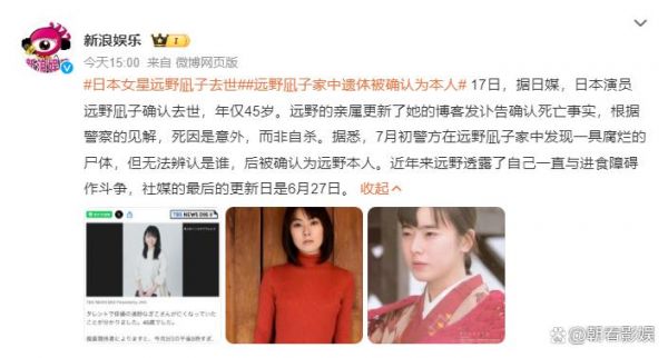 痛心!日本女星疑抑郁去世,遺體多日無人發(fā)現(xiàn)