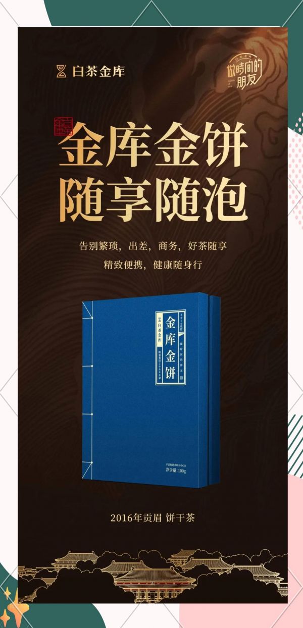 「金庫(kù)金餅」不僅追求卓越的產(chǎn)品品質(zhì),更在外觀設(shè)計(jì)上體現(xiàn)了對(duì)“不將就”生活態(tài)度的堅(jiān)持。其餅干茶的獨(dú)特造型,不僅別具一格,更是對(duì)顏值追求的一種極致體現(xiàn)。書籍裝幀別致,透露出濃郁的文藝氣息。每個(gè)小盒包含5泡茶,每泡重5克,這樣的設(shè)計(jì)更便于人們?nèi)粘o嬘?,精?zhǔn)把控分量。這一細(xì)節(jié)之處,恰恰體現(xiàn)了都市白領(lǐng)們對(duì)健康時(shí)尚生活的執(zhí)著追求。