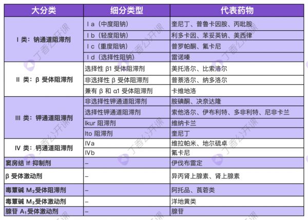 我們先來(lái)總體看一下心律失常藥物的分類(lèi)和代表藥: