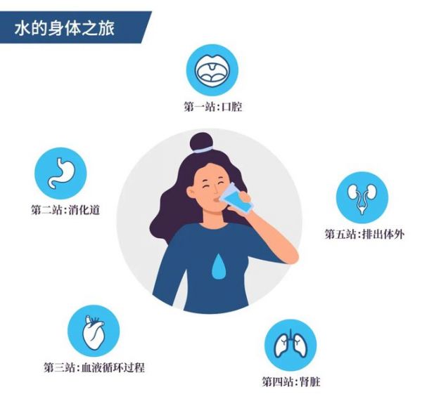 水經(jīng)過食管,一部分會被氣管和消化道的黏膜吸收,可以保持氣管黏膜的濕潤,保持呼吸通暢。通過食管進(jìn)入胃和腸道,可以促進(jìn)食物的消化和營養(yǎng)成分的吸收。進(jìn)入腸道的水分會促進(jìn)腸道的蠕動,保證腸道菌落正常功能,從而促進(jìn)人體正常的代謝以及毒素的排出。進(jìn)入胃的水分一部分用來溶解胃中存儲的食物,便于人體吸收;一部分會被胃腸道吸收,進(jìn)入血液循環(huán),經(jīng)過血液進(jìn)入心臟,成為生命動力之源。水中含有的礦物質(zhì)微量元素,對身體的養(yǎng)分起到補充作用,而沒有被人體吸收的水分,則會通過代謝排出體外。