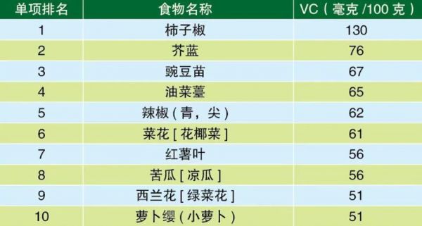 附2022版中國(guó)食物蔬菜類和水果類維生素C含量排前10表