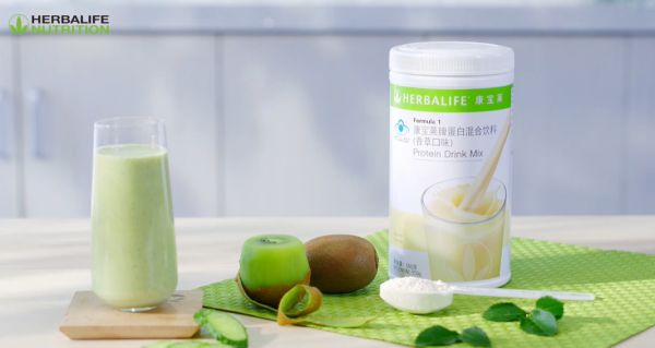 首先將黃瓜和奇異果去皮切片后放入攪拌機,接著將脫脂牛奶倒入攪拌機,放入康寶萊蛋白混合飲料(香草口味),低速攪拌2-3分鐘,將攪拌好的奶昔倒入杯中后,就可以享受美味啦!
