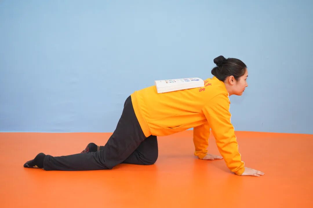 要求兒童頭部抬起,手掌著地,膝蓋著地向前爬行。家長(zhǎng)根據(jù)兒童的能力,可以在兒童后背放上書記、沙袋或枕頭等,讓兒童在爬行過(guò)程中保證不能掉落。
