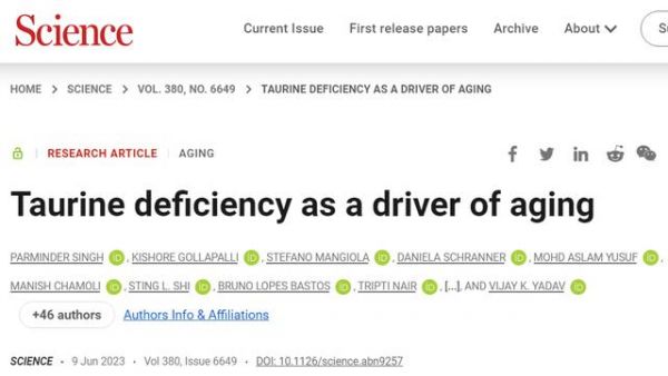 不久前,全球頂尖的學術雜志《科學》上,美國哥倫比亞大學的Vijay Yadav教授團隊發(fā)表了一篇關于“?;撬崤c衰老”的研究。他們驚人地發(fā)現(xiàn),通過補充?;撬幔谷豢梢詫ι矬w的老化過程產生干預,延緩衰老的速度最高可達23%。這是繼梅奧賽樂瑞類Senolytics(選擇性清除衰老細胞)物質后,少數(shù)被學術頂刊承認的“具備抗衰潛力”的物質。