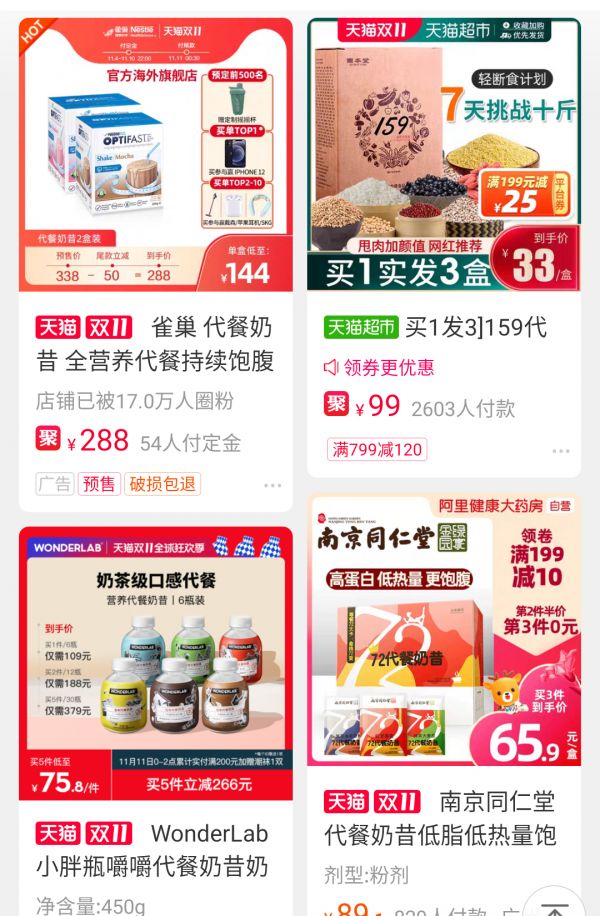 電商平臺上的代餐產(chǎn)品。來源:淘寶截圖