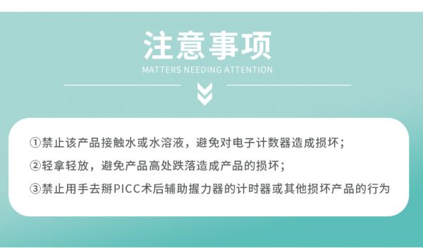 禁止用手去掰PICC術后輔助握力器的計時器或其他損壞產品的行為。