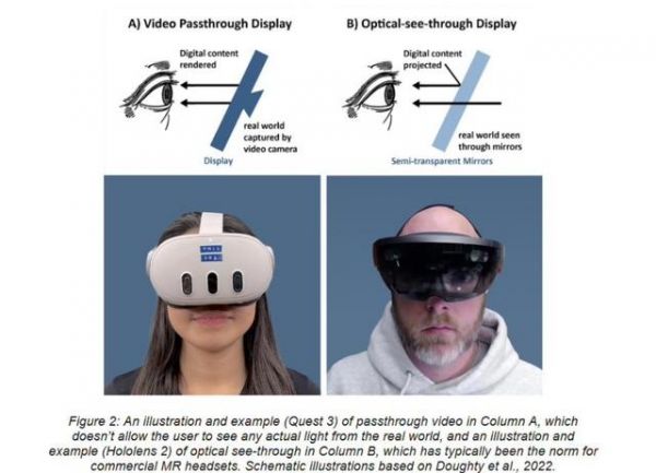 斯坦福大學(xué)的研究表明,蘋(píng)果Vision Pro等頭顯設(shè)備,主要通過(guò)攝像頭將真實(shí)環(huán)境投射到頭顯屏幕上,讓用戶(hù)能夠在虛擬現(xiàn)實(shí)中看到真實(shí)世界,而也正是因?yàn)轭^顯存在的失真、視野不足、對(duì)比落差等問(wèn)題,長(zhǎng)期使用會(huì)導(dǎo)致使用者大腦出現(xiàn)認(rèn)知失調(diào),從而難以區(qū)分哪些是虛擬事物,哪些是真實(shí)事物,嚴(yán)重的可能導(dǎo)致視覺(jué)錯(cuò)亂,影響正常辨別物體和走路等。