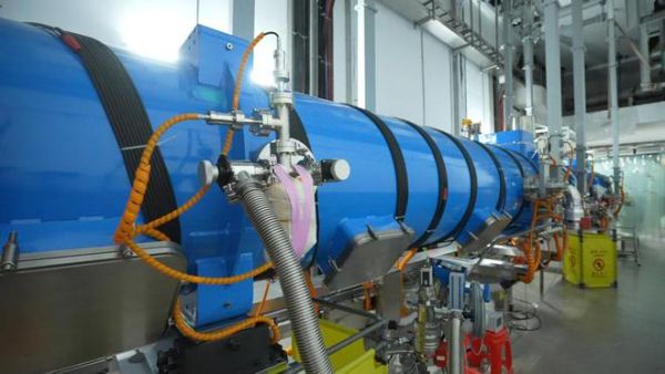 硬X射線自由電子激光裝置的超導加速模組。 圖片來源:上海科技大學