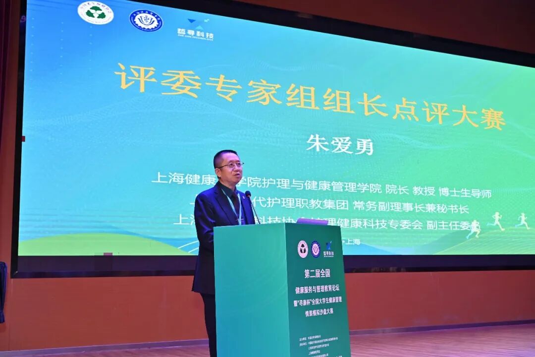 答辯賽結(jié)束后,評委專家組組長朱愛勇教授對大賽做精彩點評。他充分認可本次大賽完備的賽事內(nèi)容設(shè)計和細致周到的賽事組織安排,高度肯定本屆大賽的舉辦對促進全國健康服務(wù)與管理類相關(guān)專業(yè)師生交流和健康服務(wù)與管理類學(xué)科專業(yè)發(fā)展建設(shè)的重要意義。