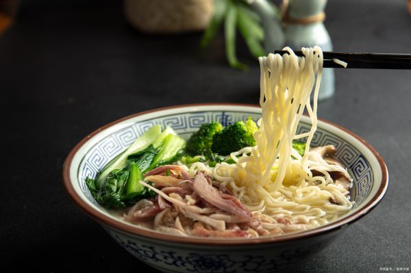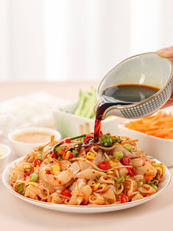 5. 最后將面、雞絲和蔬菜放入碗中,澆上調(diào)好的醬汁,最后放些芥末調(diào)味即可。
