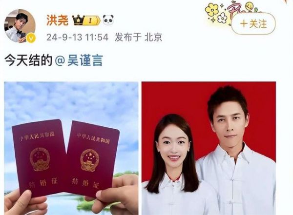 如果說(shuō)歐陽(yáng)妮妮的懷孕是九月幸福交響曲的序曲,那么接下來(lái)的幾樁喜事,則是將這首曲子推向了高潮。9月13日,吳謹(jǐn)言突然官宣領(lǐng)證結(jié)婚,讓無(wú)數(shù)粉絲措手不及。這位在熒幕上總是以堅(jiān)強(qiáng)獨(dú)立形象示人的女演員,終于找到了自己的歸宿,與丈夫洪堯攜手步入婚姻的殿堂。兩人雖然之前并未公開戀情,但這份突如其來(lái)的幸福,依然收獲了滿滿的祝福。