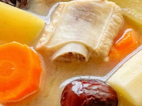 3、將排骨、山藥、胡蘿卜、紅棗和姜片都放入湯鍋中,加入足量的清水,蓋上蓋子燉煮半個小時。